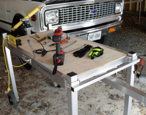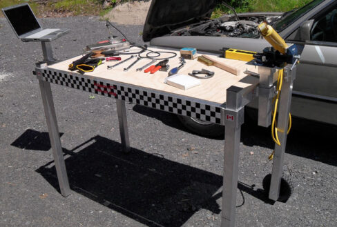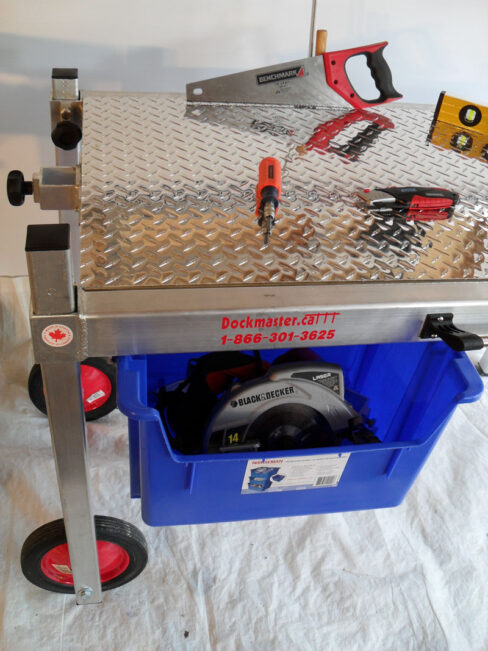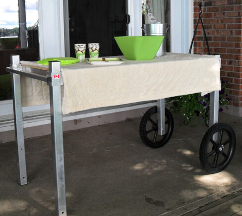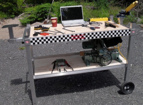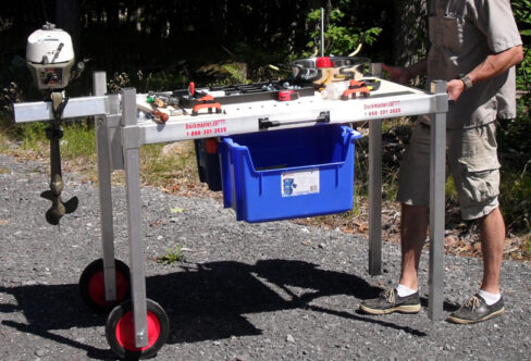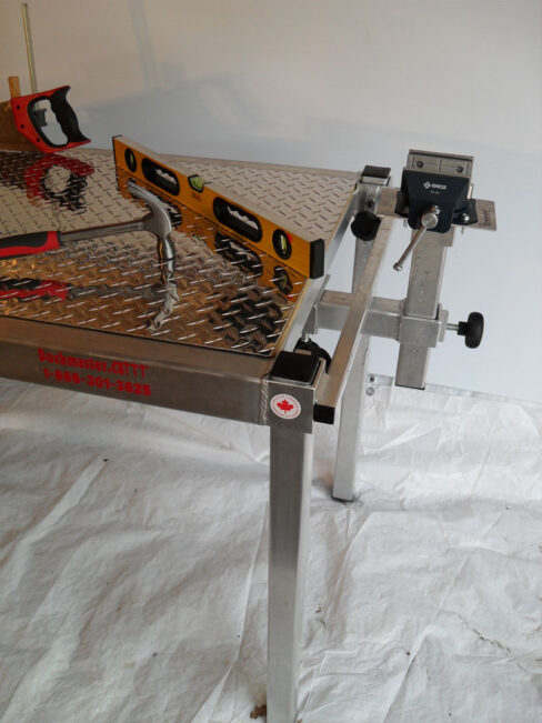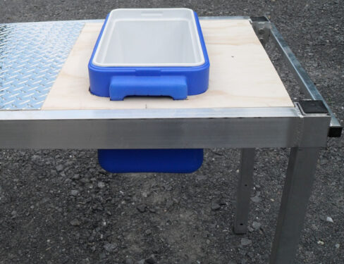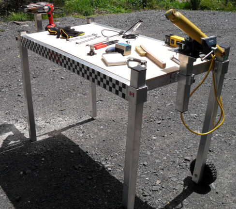 - Fully adjustable table top and legs to suit preferred working height and uneven terrain.