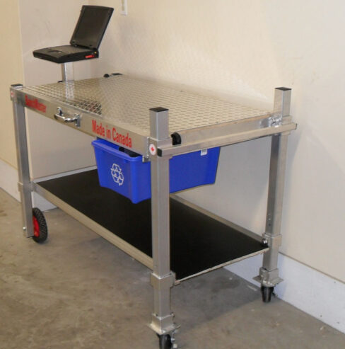 - Boasts 27″ wide work surface and three available lengths…4ft—6ft—8ft long. *